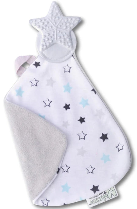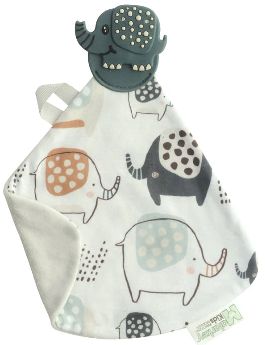 The Munch-It Blanket is a convenient teether and cozy blanket for baby. Designed in fun, yet functional shapes to target baby's emerging front and eye teeth as well as early molars. The teether is made of soft, flexible, BPA-free, food-grade silicone. The soft, fabric blanket is for baby to snuggle and absorbs excess drool from chewing/teething.