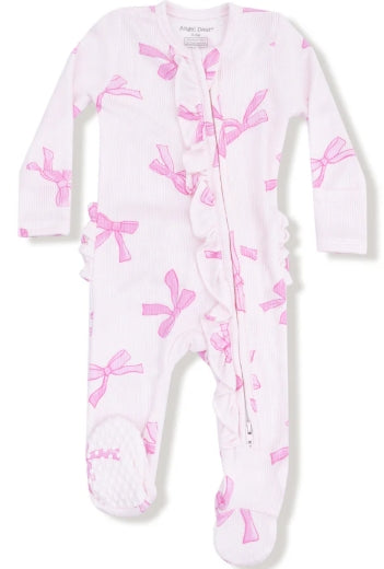 Our signature 2-Way Ruffle Sleeve Zipper Footie makes changing your baby a breeze! (Or as we like to say, a Zip!) Crafted from luxuriously soft ribbed modal fabric and adorned with Angel Dear's signature prints, this footie combines comfort, charm, and convenience to keep your little one looking adorable and feeling cozy.